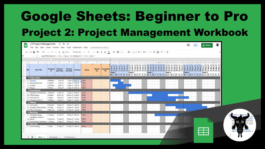Google Sheets Beginners to Pro: Project 2: Project Management Workbook